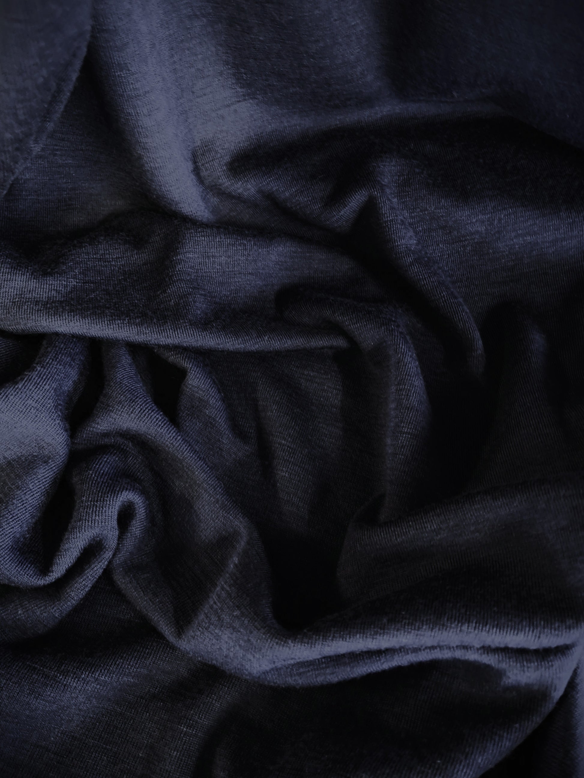 Mjúkt og þægilegt rib-jersey úr 100% merino ull. Efnið er teygjanlegt, með fínlegu sléttu og brugnu prjóni (1x1). Merino ullin er þekkt fyrir að vera hlý án þess að vera þung, öndunargóð og einstaklega notaleg við húð.