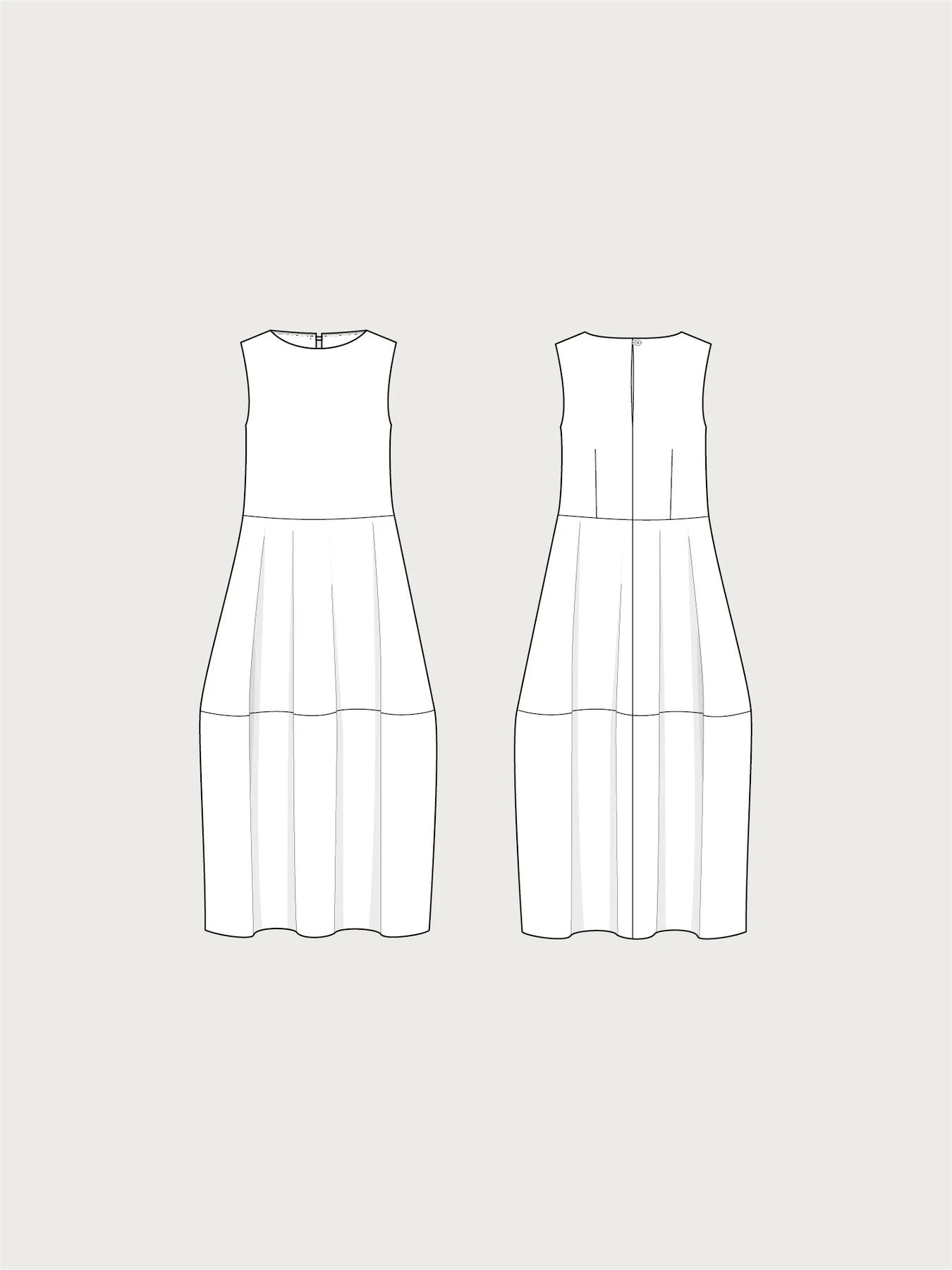 Barrel kjóllinn er frumlegt og rúmgott snið með miðjusídd og pilsi í formi ámu sem er skemmtilegt en líka mjög klæðilegt. Hægt er að sauma hann með luktarlaga ermum (e. lantern sleeves) sem undirstrika form pilsins, eða ermalausan. Ermalausa útgáfan er falleg viðbót í sumarkjólasafnið.