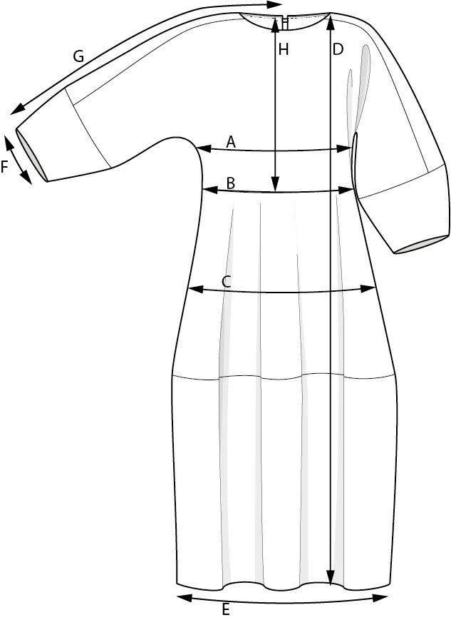 Efnisþörf með ermum: 110-120 cm efnisbreidd XS 3,5 m / S 3,6 m / M 3,6 m / L 3,7 m / XL-3XL N/A* 140-150 cm efnisbreidd XS 3,0 m / S 3,1 m / M 3,1 m / L 3,2 m / XL 3,9 m / 2XL 3,9 m / 3XL 3,9 m