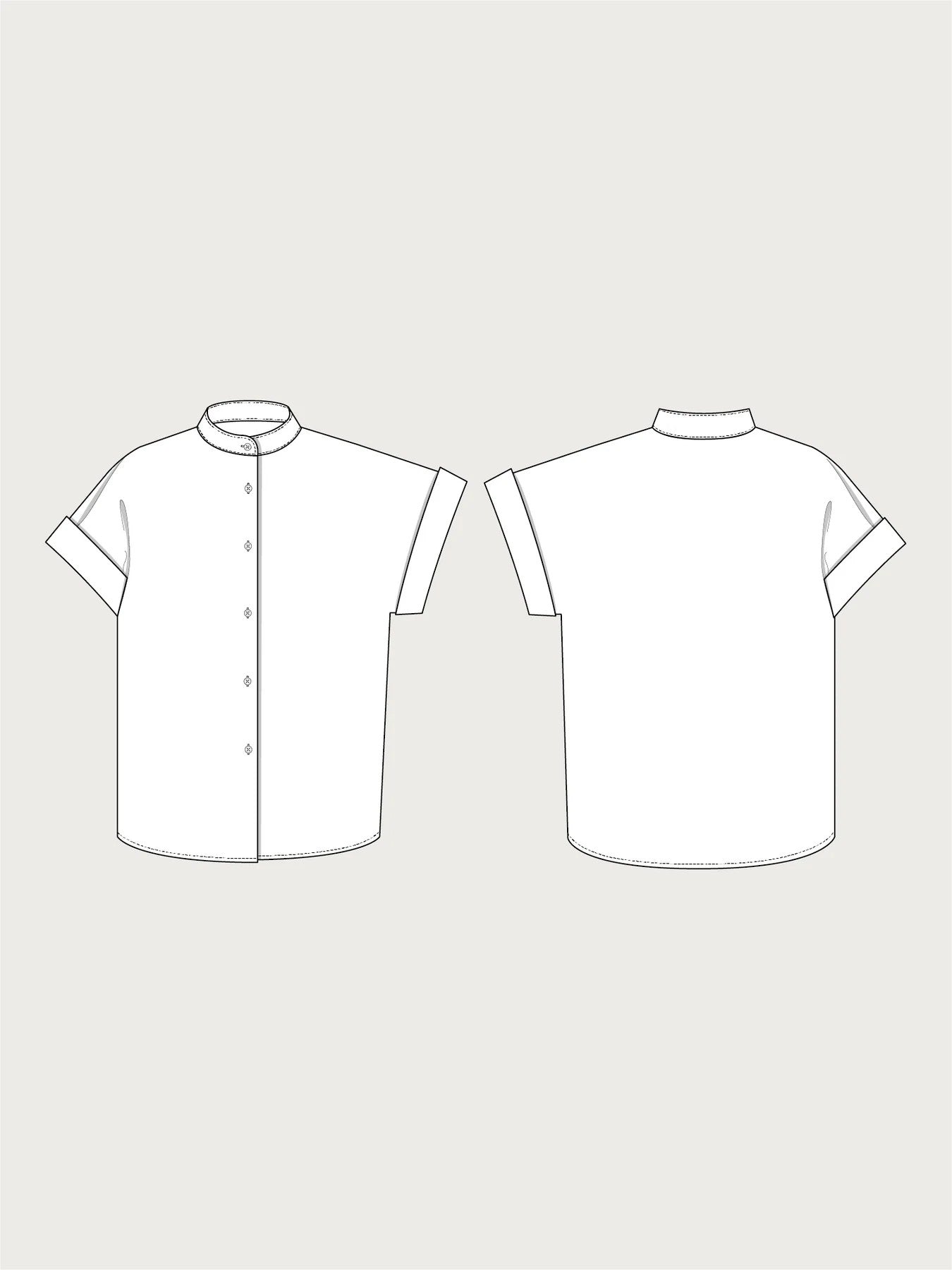 Cap Sleeve (stutterma) skyrtan er tímalaus í útliti og auðveld í stíliseringu og notkun. Hún er með beinu og víðu sniði og er með stuttum ermum með uppbroti og standkraga.