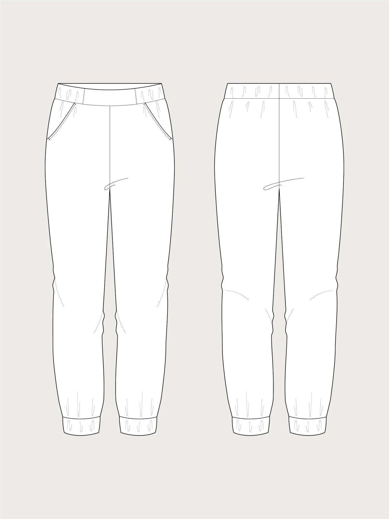 Ólík efnisval geta gjörbreytt heildarsvipnum og gefið buxunum allt frá fáguðu yfirbragði til mjúks og afslappaðs stíls. Hægt er að sleppa teygjuköntunum neðst á skálmunum og falda opið í staðinn til að skapa einfaldari og klassískari útfærslu.