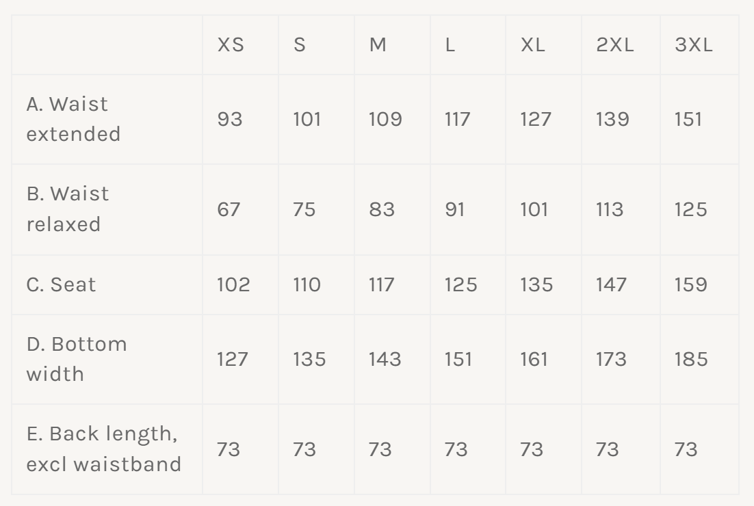 XS 100 cm / S 110 cm / M 120 cm / L 130 cm / XL 140 cm / 2XL 150 cm / 3XL 160 cm