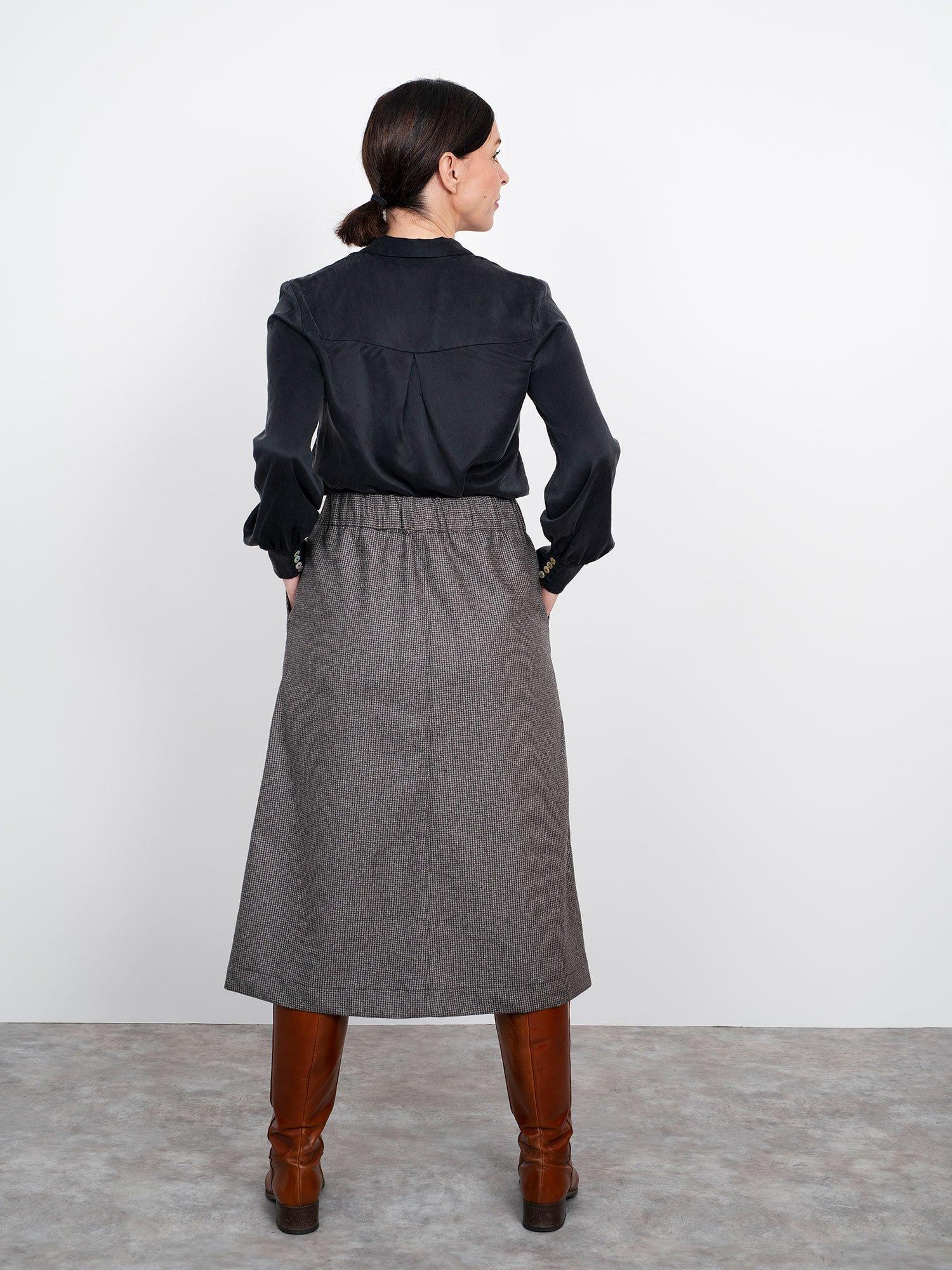 A-laga midi pilsið er einfalt í saum með nútímalegum frágangi.